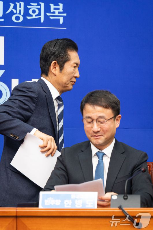(서울=뉴스1) 유승관 기자 = 정청래 더불어민주당 대표가 16일 서울 여의도 국회에서 열린 최고위원회의에서 청와대 정당 지도부 오찬 참석을 위해 이석하고 있다. 2026.1.16/뉴스1fotogyoo@news1.krCopyright ⓒ 뉴스1. All rights reserved. 무단 전재 및 재배포, AI학습 이용 금지.