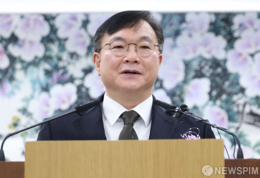 [서울=뉴스핌] 정일구 기자 = 박영재 신임 법원행정처장이 16일 오전 서울 서초구 대법원에서 열린 취임식에서 취임사를 하고 있다. 2026.01.16 mironj19@newspim.com