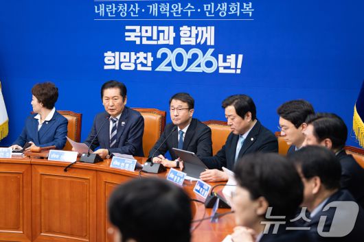 (서울=뉴스1) 유승관 기자 = 정청래 더불어민주당 대표가 16일 서울 여의도 국회에서 열린 최고위원회의에서 모두 발언을 하고 있다. 2026.1.16/뉴스1