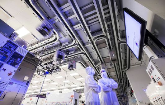 반도체 제조 공정이 이뤄지는 클린룸 내부 모습 [사진=글로벌파운드리스(GF) 공식 페이스북 캡처] |