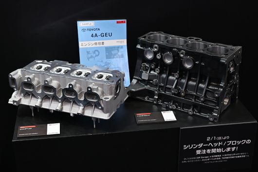 행사에서 전시된 AE86용 엔진 블록의 경우 최신 호닝 공정을 통해 가공 정밀도를 높였고, 고강성 주철 소재를 사용해 내구성을 강화했다. 또한 실린더 헤드는 흡·배기 포트 벽면을 두껍게 보강하여 튜닝 및 유지보수 편의성을 높이는 등 마니아들의 실질적인 요구를 적극 반영했다.