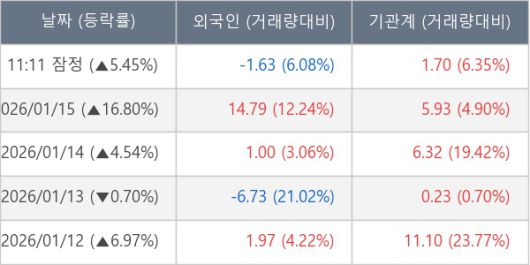 ※ 사모펀드 등 일부 기관의 순매매량은 표시되지 않음