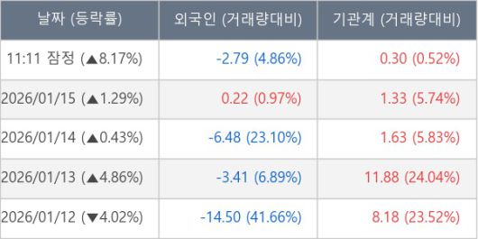 ※ 사모펀드 등 일부 기관의 순매매량은 표시되지 않음