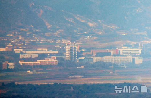[파주=뉴시스] 홍효식 기자 = 지난해 10월 29일 경기 파주시 접경지역에서 바라본 북한 개성공단이 보이고 있다. 2026.01.16 yesphoto@newsis.com |