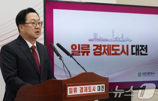(대전=뉴스1) 김기태 기자 = 이장우 대전시장이 16일 오전 시청 브리핑룸에서 대전·충남 행정통합 관련 긴급 브리핑을 하고 있다. 정부는 행정 통합을 촉진하기 위해 통합특별시에 각각 연간 최대 5조 원씩, 4년간 최대 20조 원 수준의 파격적인 재정 지원 방안을 마련하겠다고 밝혔다. 또한 통합특별시에 서울특별시에 준하는 지위도 부여하기로 했다. 2026.1.16/뉴스1