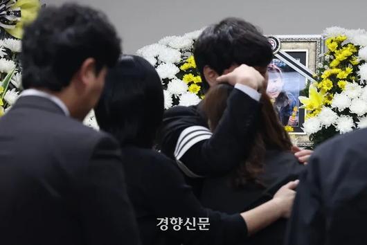 교사가 휘두른 흉기에 찔려 숨진 김하늘양 발인이 진행된 지난해 2월14일 대전의 한 장례식장에서 유가족이 서로를 위로하고 있다. 한수빈 기자 |