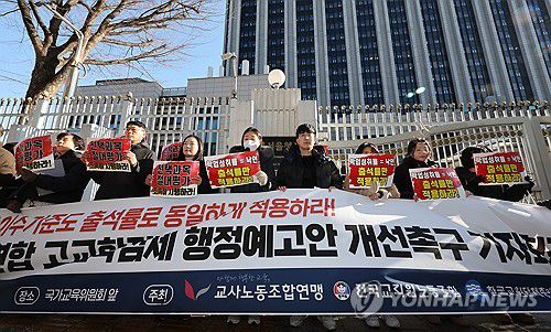 (서울=연합뉴스) 오보람 기자 = 국가교육위원회(국교위)가 고교학점제 공통과목 학점 이수 기준에 학업성취율 반영을 유지하기로 결정한 것과 관련해 교원 3단체가 한 목소리로 반발하고 나섰다.