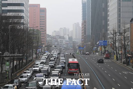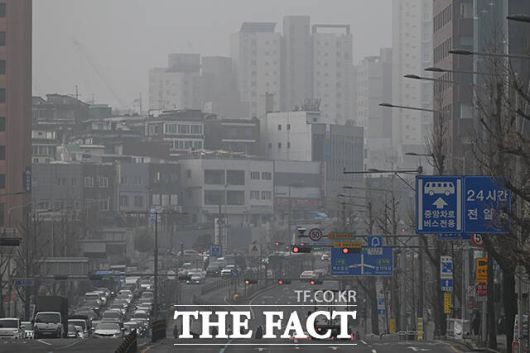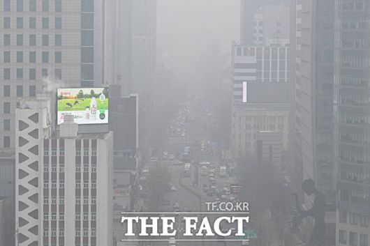 [더팩트ㅣ서예원 기자] 전국 대부분 지역의 미세먼지 농도가 ‘나쁨’ 수준을 보인 16일 오전 서울 종로구에서 바라본 도심 일대가 뿌옇게 보이고 있다.