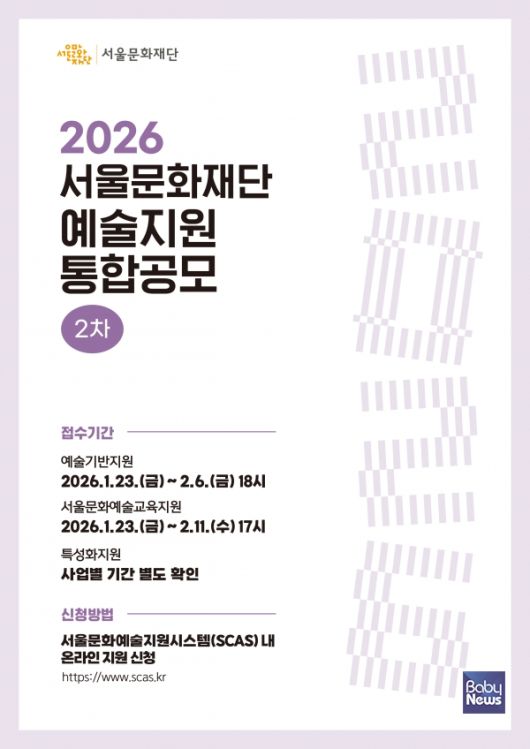 서울문화재단(대표이사 송형종)은 '2026년 서울문화재단 예술지원 통합공모 2차’의 신청 접수를 오는 20일(화)부터 서울문화예술지원시스템(SCAS)을 통해 시작한다고 16일 밝혔다.