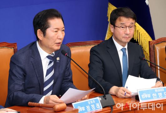 아시아투데이 송의주 기자 = 정청래 더불어민주당 대표가 16일 국회에서 열린 최고위원회의에서 발언을 하고 있다.