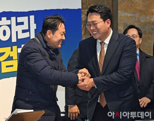 아시아투데이 송의주 기자 = 천하람 개혁신당 원내대표가 16일 국회에서 윤석열·김건희에 의한 내란·외환 및 국정농단 행위의 진상규명을 위한 특별검사 임명 등에 관한 법률안(2차 종합 특검)에 대한 무제한 토론(필리버스터)을 마친 후 단식 중인 장동혁 국민의힘 대표와 악수하고 있다. ⓒ "젊은 파워, 모바일 넘버원 아시아투데이"