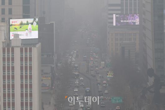 황사·스모그 겹쳐 '나쁨'…서울 도심 뿌연 하늘 [포토로그]