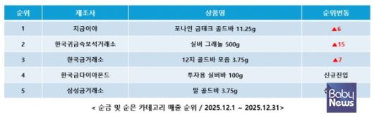 12월 순금 및 순은 카테고리 매출 순위. ⓒ커넥트웨이브 |