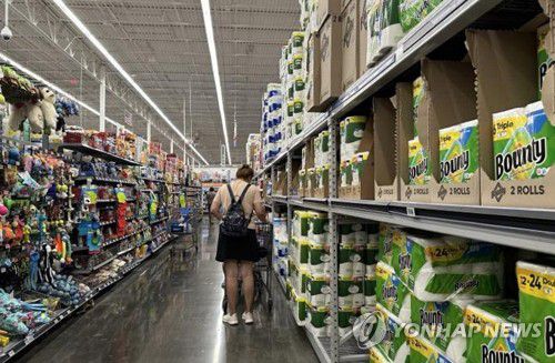 미국 LA 월마트에서 가격 살피는 소비자 |