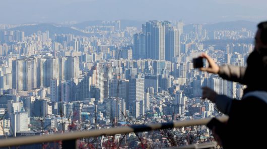 서울 남산에서 바라본 아파트 단지. 신태현 기자 holjjak@ |