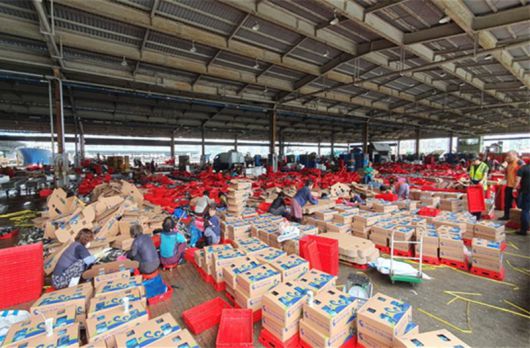 부산공동어시장 위판장에서 부산시 수산자원연구소 직원들이 수산물 안전성조사를 위한 시료를 수거하고 있는 모습. 부산시 제공 |