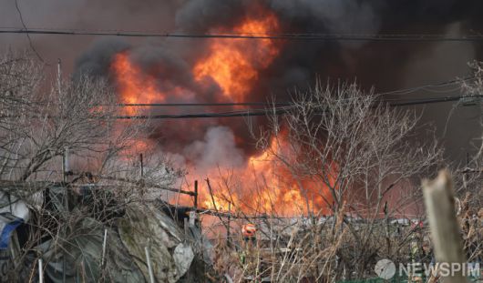 개포동 구룡마을 화재와 싸우는 소방관들