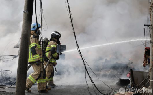 [서울=뉴스핌] 양윤모 기자 = 16일 오전 5시경 서울 강남구 개포동 구룡마을 4구역에서 화재가 발생해 소방관들이 진화를 하고 있다. 소방당국은 대응 1단계를 2단계로 격상하고 추가 인력을 투입 진화를 완료했다. 2026.01.16 yym58@newspim.com