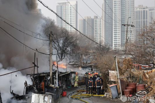 아파트와 대비되는 개포동 구룡마을 화재현장