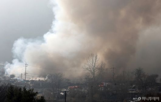 16일 서울 강남구 개포동 구룡마을에서 연기가 치솟고 있다. /사진=뉴스1 |