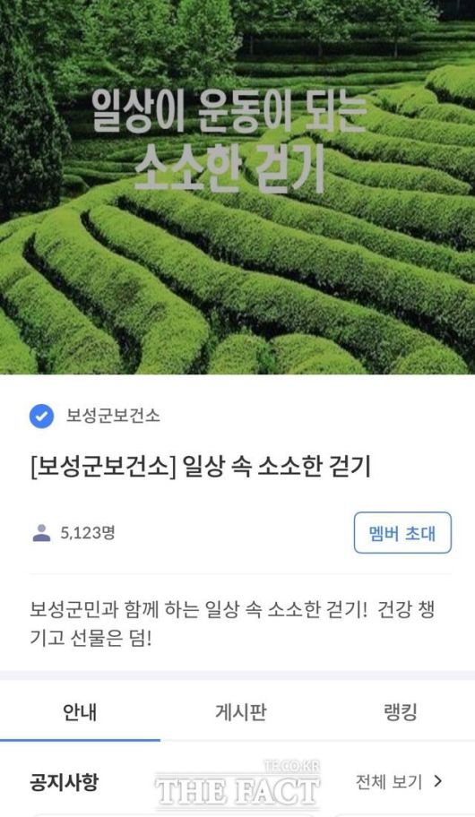 [더팩트ㅣ보성=김동언 기자] 전남 보성군은 군민 누구나 참여할 수 있는 모바일 앱 기반 비대면 건강 증진 프로그램 '소소한 걷기 챌린지'를 2026년 한 해 동안 연중 운영한다고 16일 밝혔다.