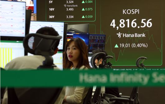 16일 오전 서울 중구 하나은행 딜링룸 전광판에 지수가 표시돼 있다. 뉴시스 |