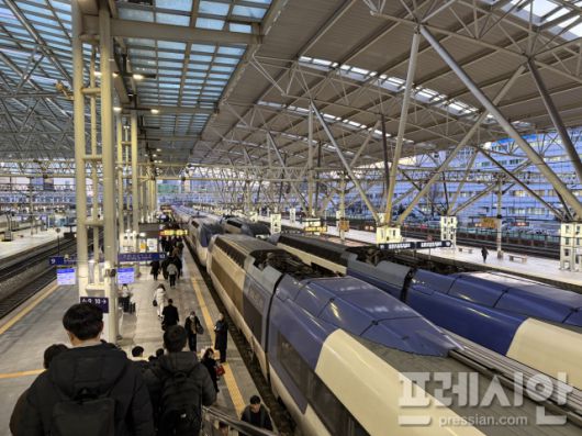 ▲ 코레일이 웹·모바일 기반 ‘산업안전보건관리 시스템’을 구축하고 멀티모달 AI를 안전관리 분야에 적용했다. 서울역 플랫폼 전경. ⓒ프레시안(문상윤) |