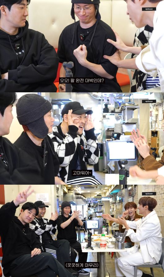 하루가 태어나기 전부터 자주 왔다는 단골 분식집에서 메뉴를 모두 시킬 기세로 주문을 마친 에픽하이와 도겸, 승관은 운동을 통한 근육 부심을 부렸다. 도겸과 승관은 타블로의 가슴 근육을 만져보며 "생각보다 엄청 단단하다"라고 말했고, 이들은 서로를 캡틴 아메리카와 토르로 비교했다. 이 가운데 도겸이 30대에 접어들었다는 점에 기립박수를 보내며 "웰컴 투 아저씨 브로"라고 축하했다.