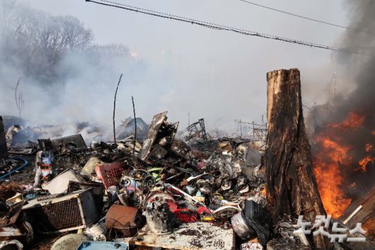 불은 6시간 34분만인 이날 오전 11시 34분 초진돼 소방당국은 대응 1단계로 하향했다.