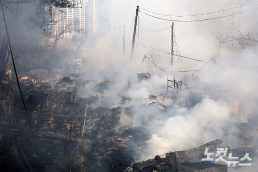 16일 오전 5시쯤 서울 강남구 개포동 구룡마을에서 난 큰불이 약 6시간 30분만에 초진됐다.