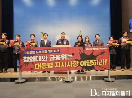 16일 금융권에 따르면, 기업은행 노조는 이날 국회 소통관에서 기자회견을 열어 청와대와 금융위원회에 "기업은행 현안을 해결해야 한다"고 목소리를 높였다.