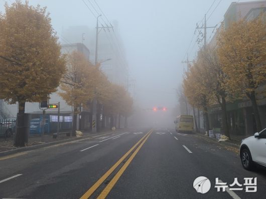 경기 광명시 목감천 인근 도로에 안개가 짙게 꼈다. [사진=뉴스핌 DB] |