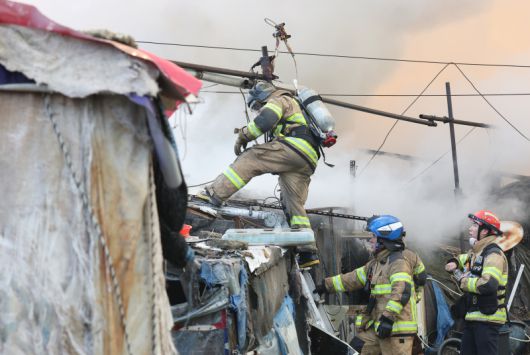 서울 강남구 구룡마을에서 발생한 화재의 불길이 약 6시간30분 만에 잡혔다. 소방 당국은 대응 1단계로 하향하고 잔불을 정리하고 있다.
