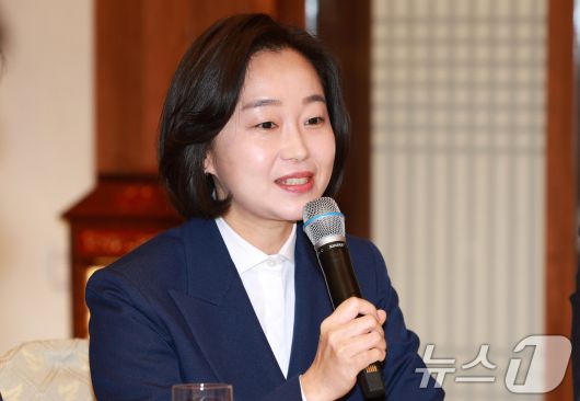 (서울=뉴스1) 허경 기자 = 김재연 진보당 상임대표가 16일 청와대 상춘재에서 이재명 대통령이 마련한 정당 지도부 초청 오찬에서 발언하고 있다. (청와대통신사진기자단) 2026.1.16/뉴스1