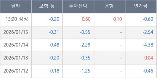 [표] 주요 기관별 순매매량 (단위 만주)