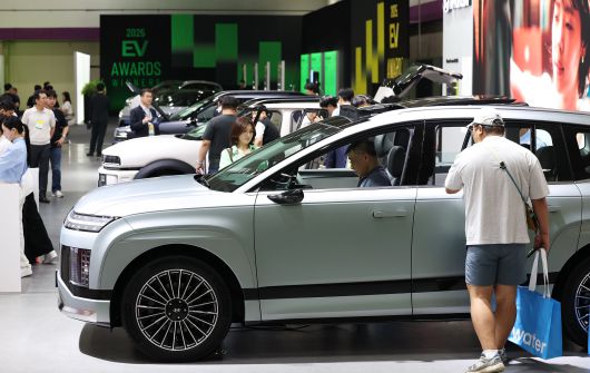 지난해 6월 서울 강남구 코엑스에서 열린 'EV트렌드코리아 2025'에서 방문객들이 현대차 '아이오닉 9'과 '디 올 뉴 넥쏘' 등 전시 차량을 살펴보고 있다. /뉴스1 |