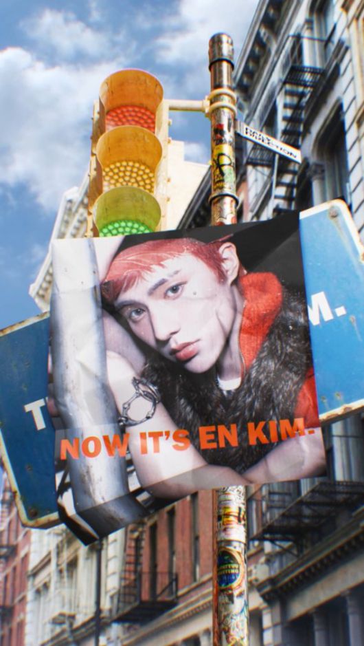 공개된 영상은 신호등에 불이 켜지며 표지판들이 요란하게 움직는 장면으로 시작되며, 'This way was M'이라는 표지판이 화면에 등장한다. 이어 EN KIM의 사진과 함께 'NOW IT'S EN KIM'이라는 문구가 더해져 새로운 활동명과 방향성을 상징적으로 담아냈다.