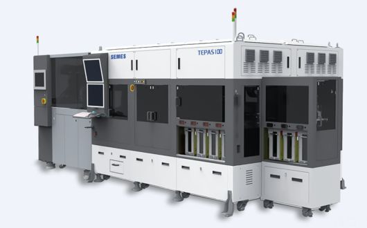 테파스100은 원자재 패키지를 낱개로 절단하고 제작된 반도체 칩을 비전으로 양품과 불량품을 검사해 트레이에 고속·고정밀 테스트 기술로 분류하는 장비다. 이 장비는 515x510㎜ 대형 사이즈 패널에서 패키지로 절단하고 제어할 수 있다는 데 의의가 있다.