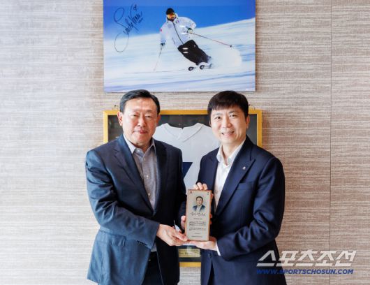 유 회장은 16일 오전 11시 서울 송파구 롯데월드타워에서 신동빈 롯데그룹 회장을 비롯한 관계자들이 참석한 가운데 감사패 전달식을 가졌다. 10년 넘게 대한민국 스키 발전을 이끌어온 롯데그룹 신동빈 회장은 최근 밀라노-코르티나 동계올림픽 대한민국 선수단의 선전을 기원하는 격려금을 전달했다.