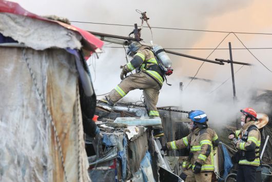 소방 당국은 이날 오전 11시 34분께 구룡마을 화재를 초진했으며, 소방 대응 단계를 2단계에서 1단계로 하향했다. 현재 큰 불길을 잡고 잔불 정리 작업을 진행 중이다.