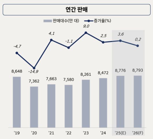 실제 완성차 업체들은 미국 관세 부과, BYD 등 중국 브랜드의 부상 등으로 인해 지난해 영업이익이 크게 감소하고 있다. 글로벌 1위 완성차업체인 도요타는 지난해 3월부터 올 3월까지 관세로 인한 영업이익 감소액이 약 1조 4000억 엔에 달할 것으로 추산하고 있다. 이전 전망인 1조 2000억엔 대비 손실 폭이 확대된 셈이다. 폭스바겐도 지난해 영업이익률 전망치를 기존 기준 대비 1.5%포인트 낮춘 4~5%로 예상하고 있다.
