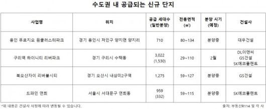 수도권 내 공급되는 신규 단지./자료제공=부동산R114 및 각 사 |
