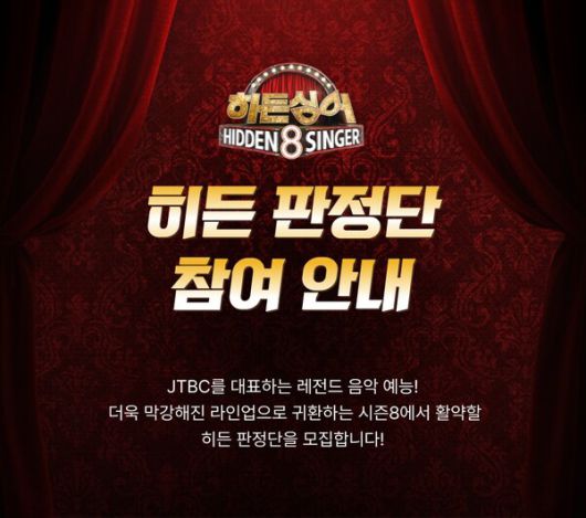 [스타데일리뉴스=황규준 기자] JTBC '히든싱어8'이 2026년 방송을 앞두고 원조 가수와 모창 능력자의 대결을 현장에서 함께할 '히든 판정단' 모집에 나섰다. 이번 시즌은 트로트부터 인디 음악까지 장르의 경계를 허무는 역대급 라인업을 예고하며 음악 팬들의 기대를 모으고 있다.