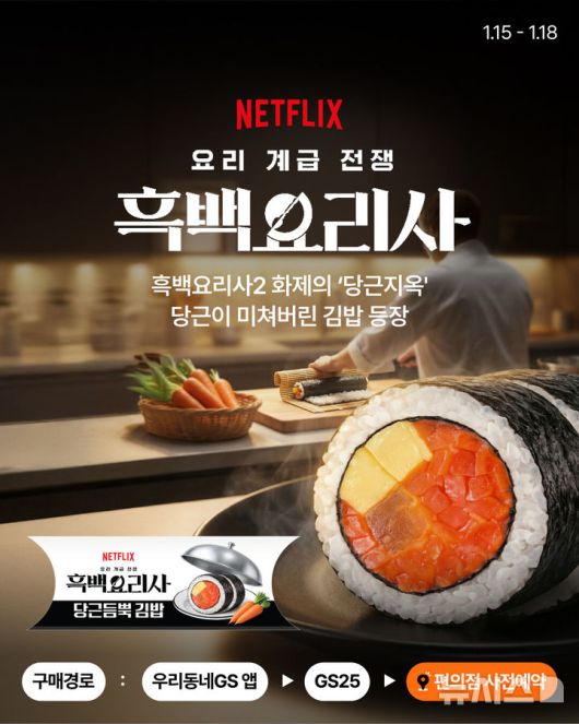 [서울=뉴시스] 이명동 기자 = GS리테일이 운영하는 편의점 GS25는 최근 종영한 온라인동영상서비스(OTT) 플랫폼 넷플릭스 오리지널 프로그램 '흑백요리사: 요리 계급 전쟁 시즌2' 관련 상품인 당근김밥을 한정 판매한 가운데, 반나절 만에 완판됐다.