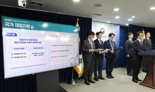 김민석 국무총리가 16일 서울 종로구 정부서울청사에서 행정통합 인센티브와 관련해 브리핑하고 있다. 연합뉴스 |