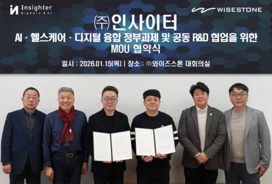 남성전 인사이터 대표는 “와이즈스톤과의 협력을 통해 기술 개발과 연구 역량을 한층 고도화하고, 다양한 R&D 사업에서 시너지를 창출할 수 있을 것으로 기대한다”며 “지속적인 협력을 통해 공동 성과를 만들어 나가겠다”고 말했다.