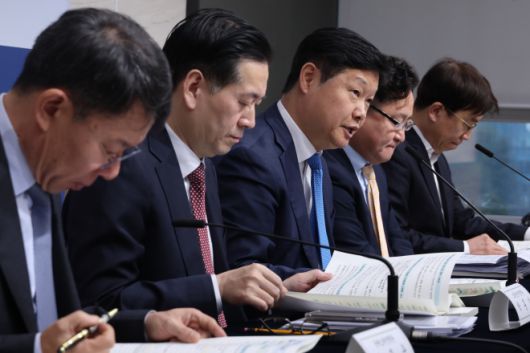 조만희 재정경제부 세제실장이 15일 정부세종청사에서 2025년 세법개정 후속 시행령 개정안에 대해 브리핑하고 있다. 왼쪽부터 재정경제부 변광욱 국제조세정책관·박홍기 소득법인세정책관·조만희 세제실장·김병철 재산소비세정책관·최재영 관세정책관. 세종 연합뉴스 |