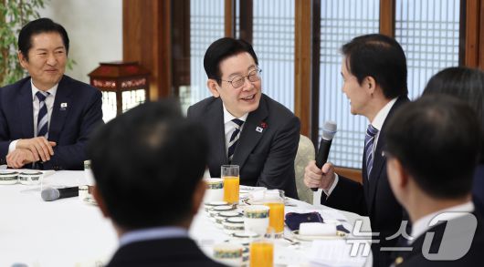 (서울=뉴스1) 허경 기자 = 이재명 대통령이 16일 청와대 상춘재에서 열린 정당 지도부 초청 오찬에서 조국 조국혁신당 대표와 이야기를 나누고 있다. (청와대통신사진기자단) 2026.1.16/뉴스1seiyu@news1.krCopyright ⓒ 뉴스1. All rights reserved. 무단 전재 및 재배포, AI학습 이용 금지.