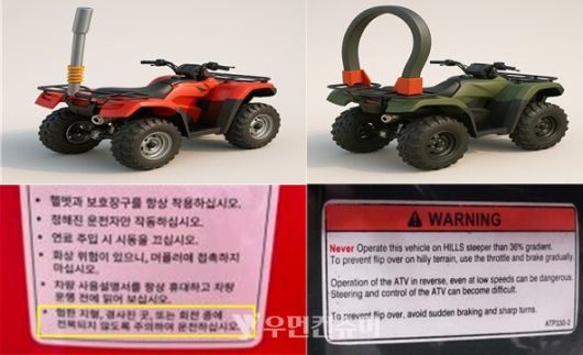 또한 '전복 위험성 경고', '권장 타이어 공기압', '적정 탑승 인원' 등 핵심 안전 표시사항도 미흡해 개선이 필요하다고 판단했다.