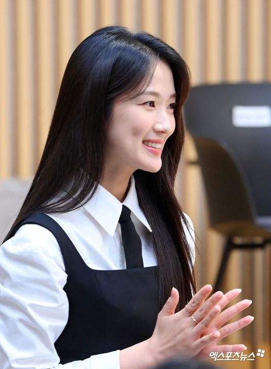 배우 김혜윤이 제작발표회에 참석하고 있다.